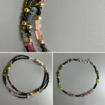 Chaque collier, chaque bracelet est élaboré en recherchant la forme, la couleur de la pierre qui accompagnera une autre forme et une autre couleur de pierre.