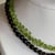On dit que : le Chrysoprase détoxe des polluants atmosphériques, le Péridot protège l'aura.Tour de cou 42 cms